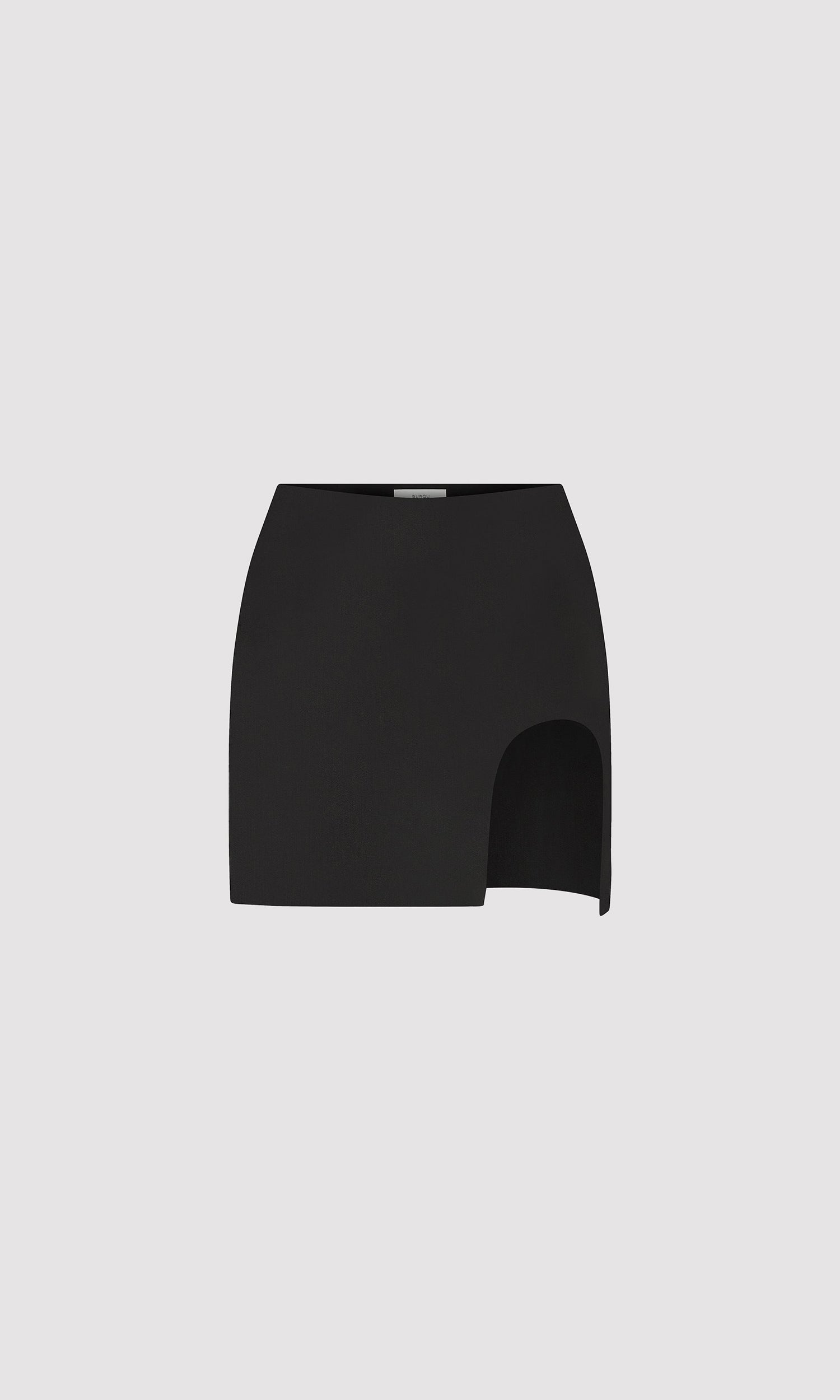 Featuring a side concealed zipper and dramatic details, this mini skirt with a round slit is the perfect piece for your summer nights.