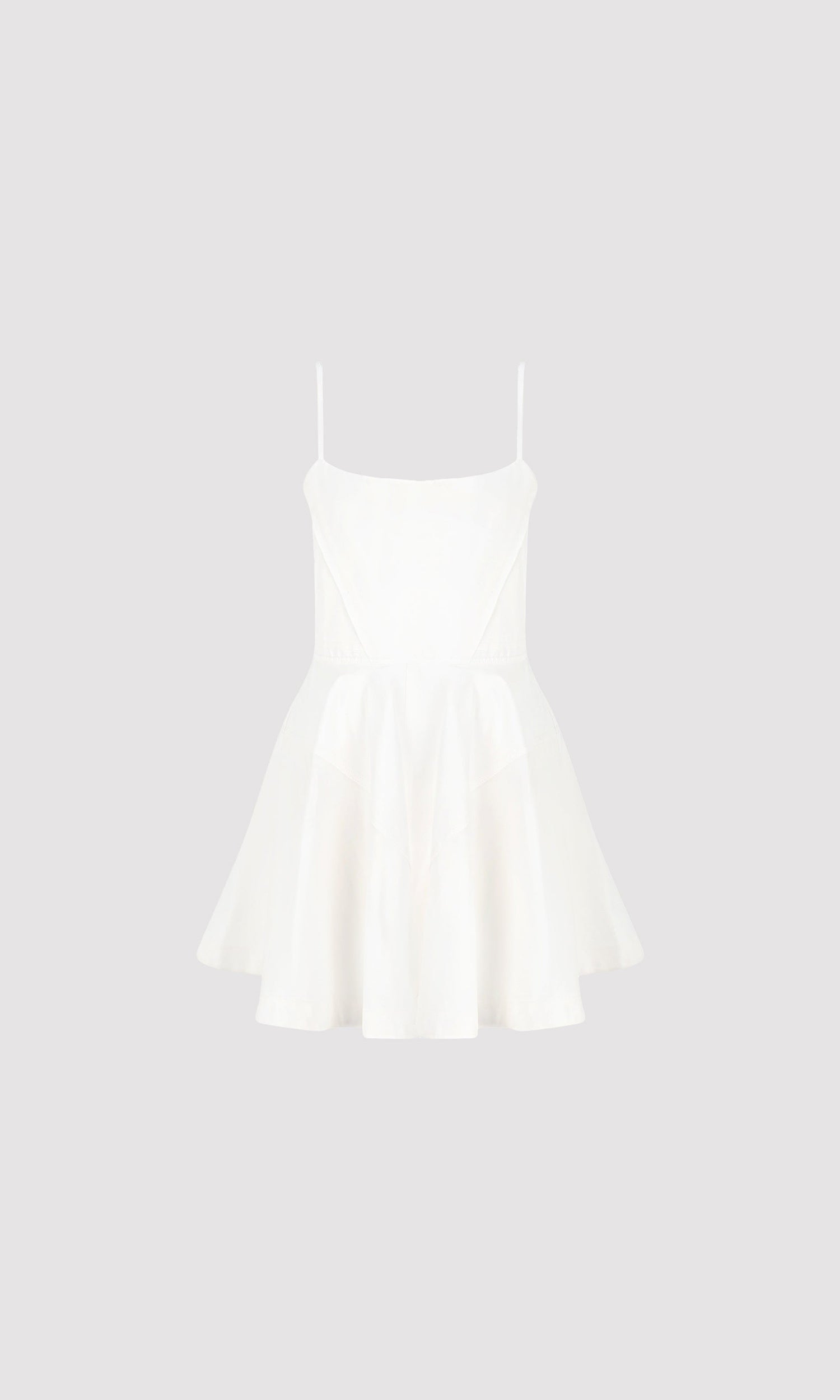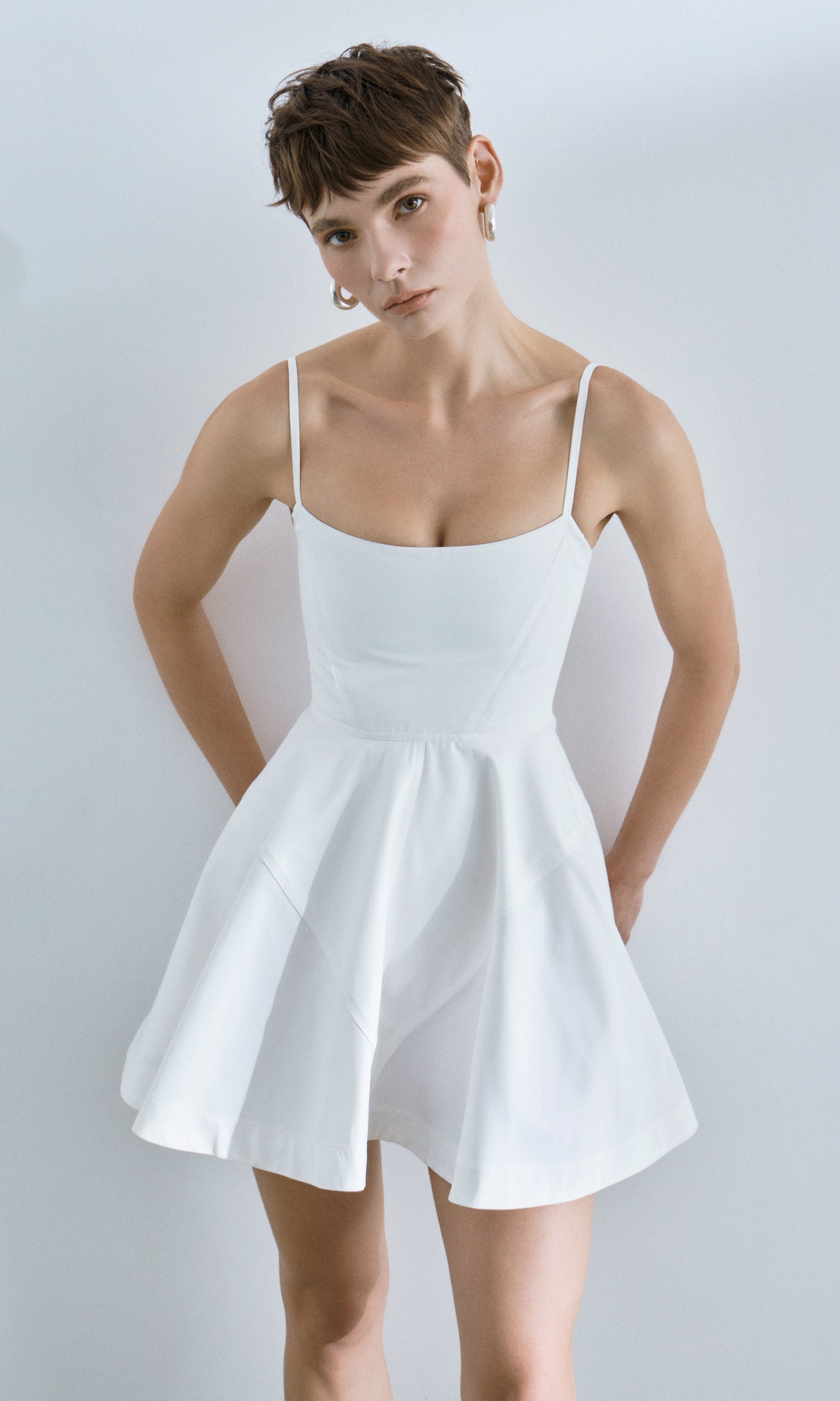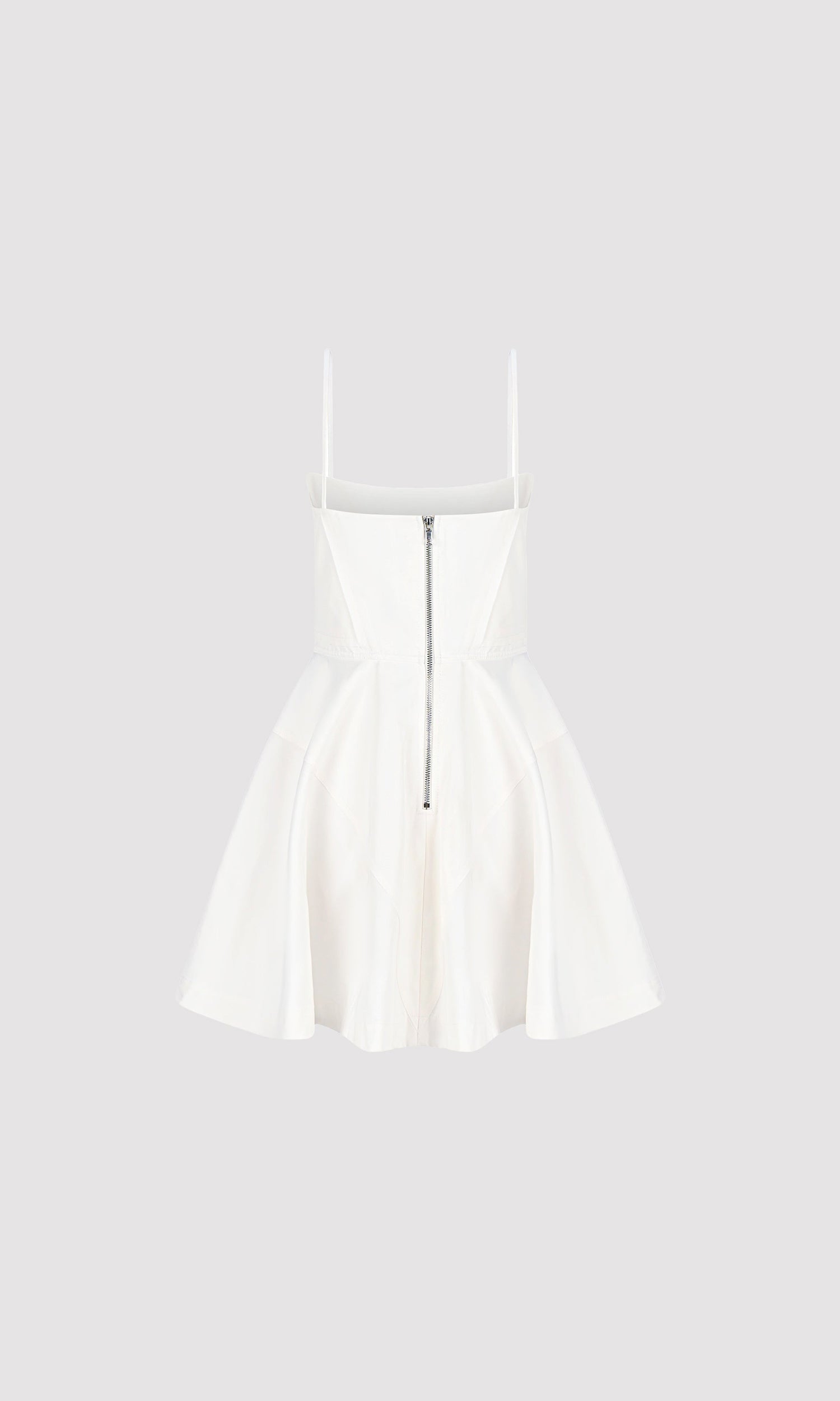 Dress in corset form and bell skirt. Enriched with pocket details on both sides.