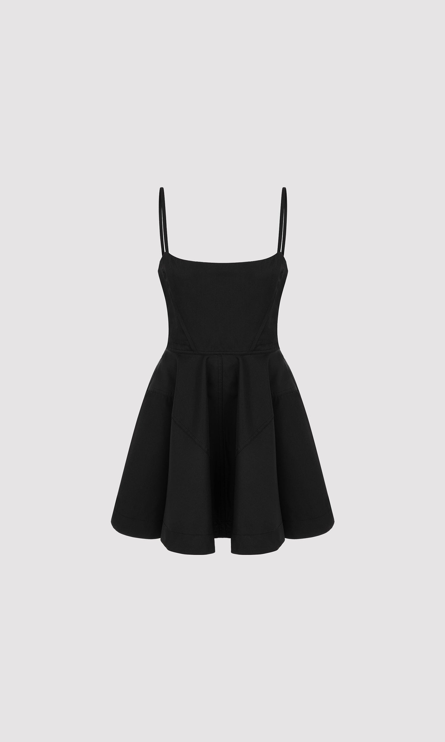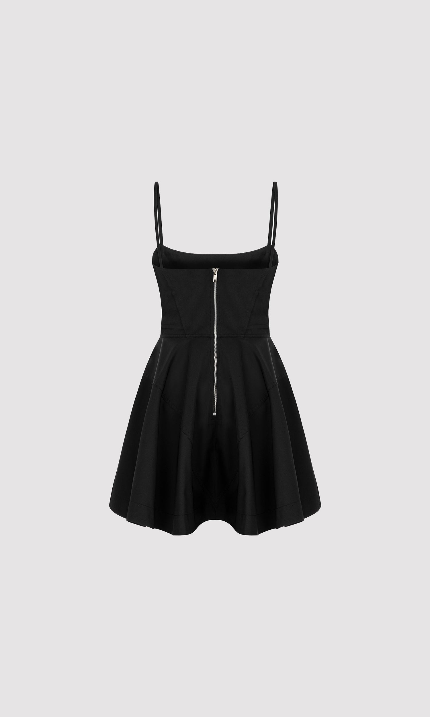 Dress in corset form and bell skirt. Enriched with pocket details on both sides.