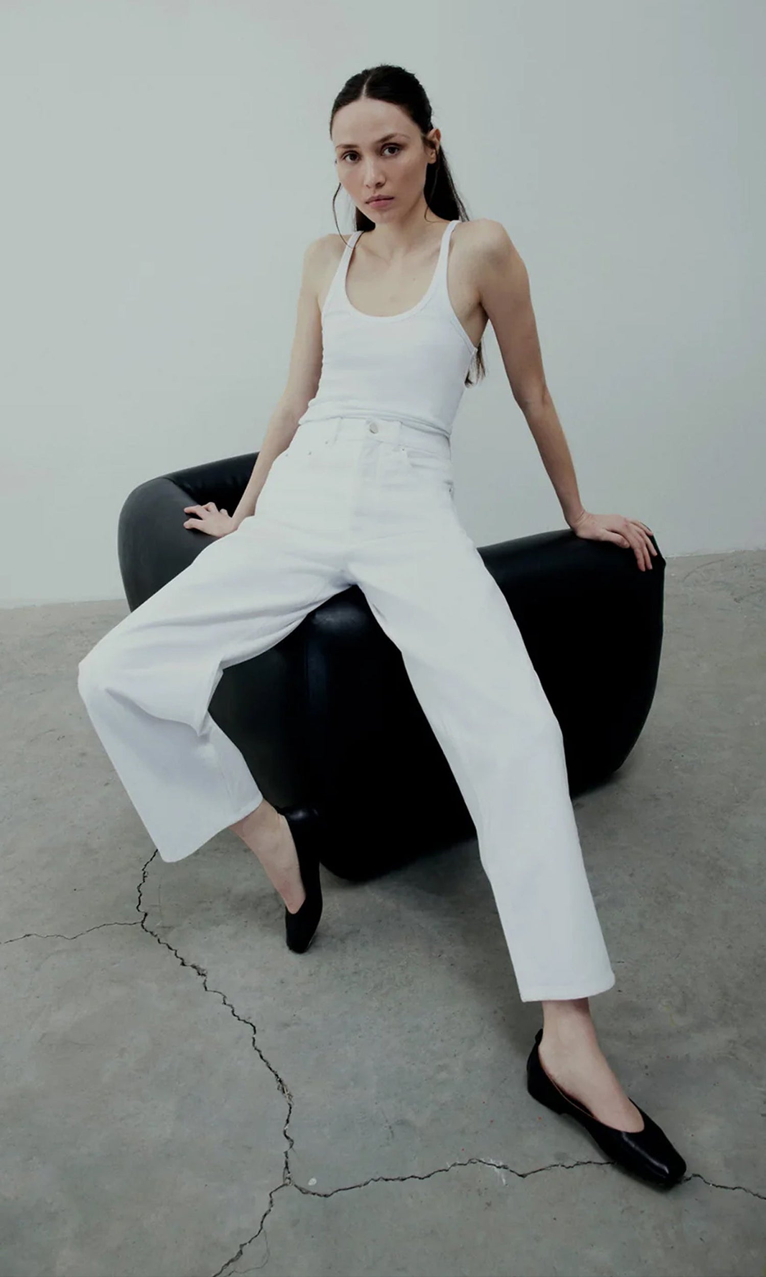 These high-rise jeans feature a loose, slightly curved barrel leg and 5-pocket styling