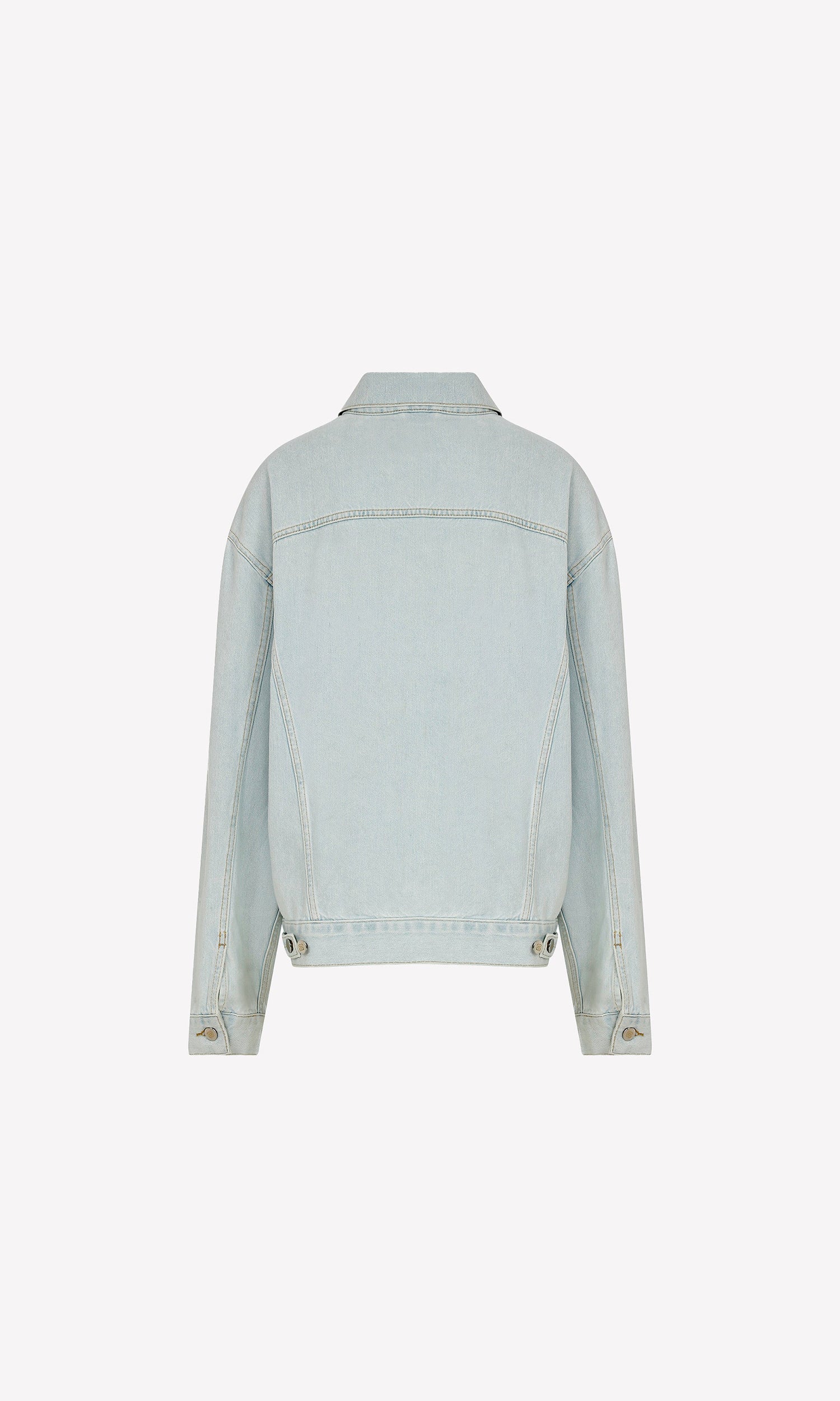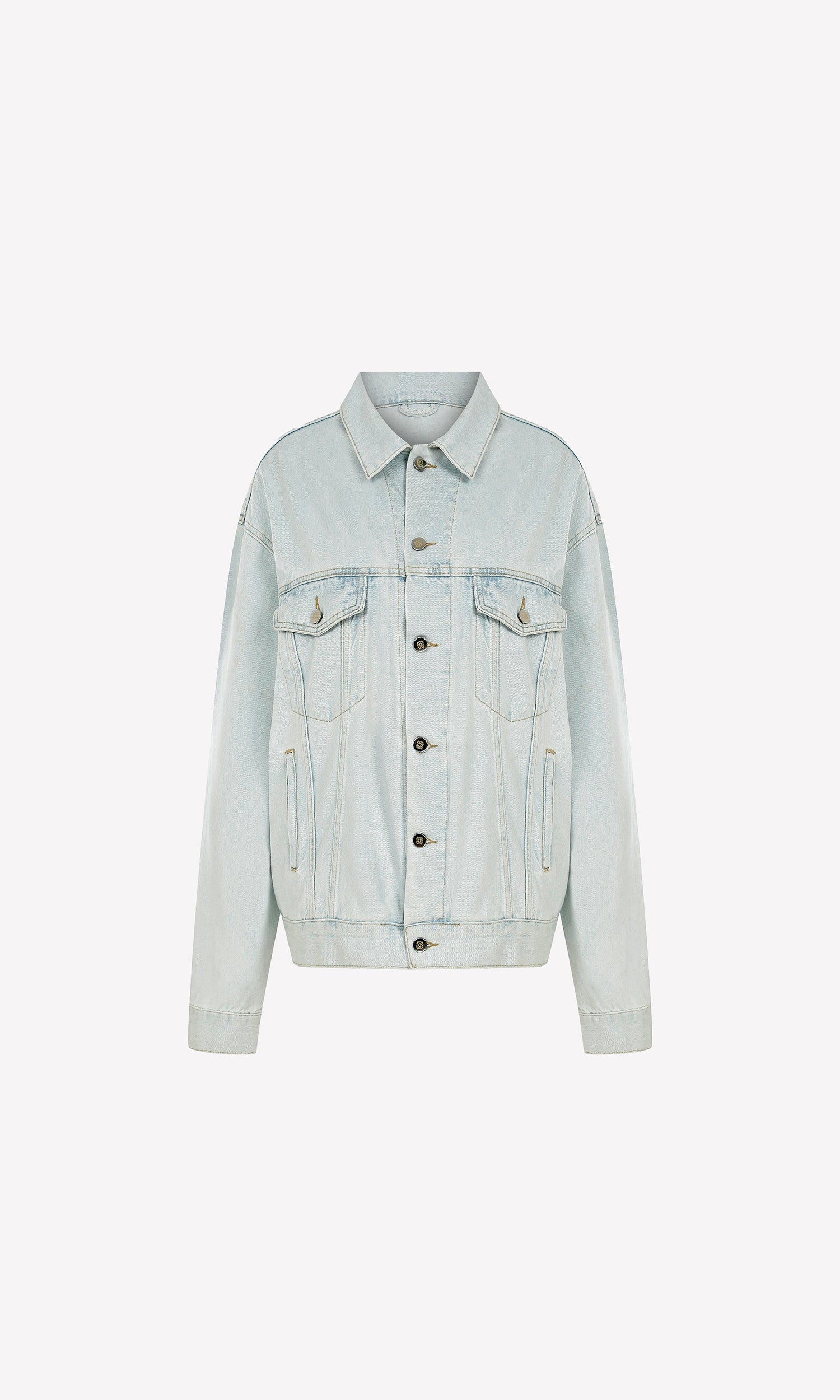Featuring all the classic details of a denim jacket, such as chest pockets with flap button closures, side pockets, adjustable straps at the hem, and buttoned cuffs, this version has an oversized fit.