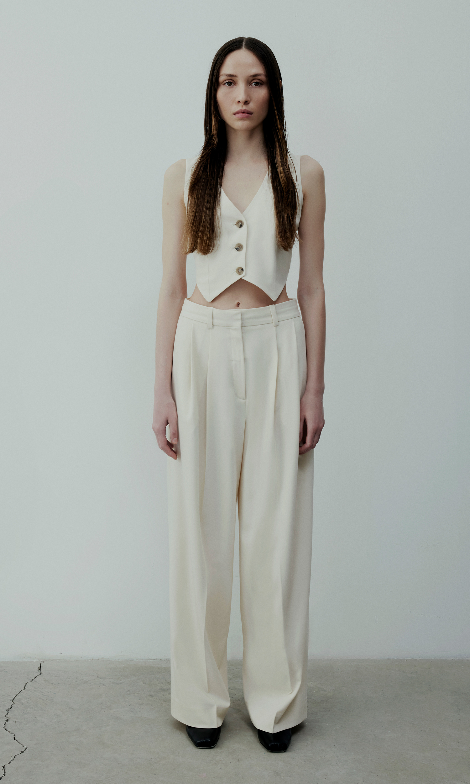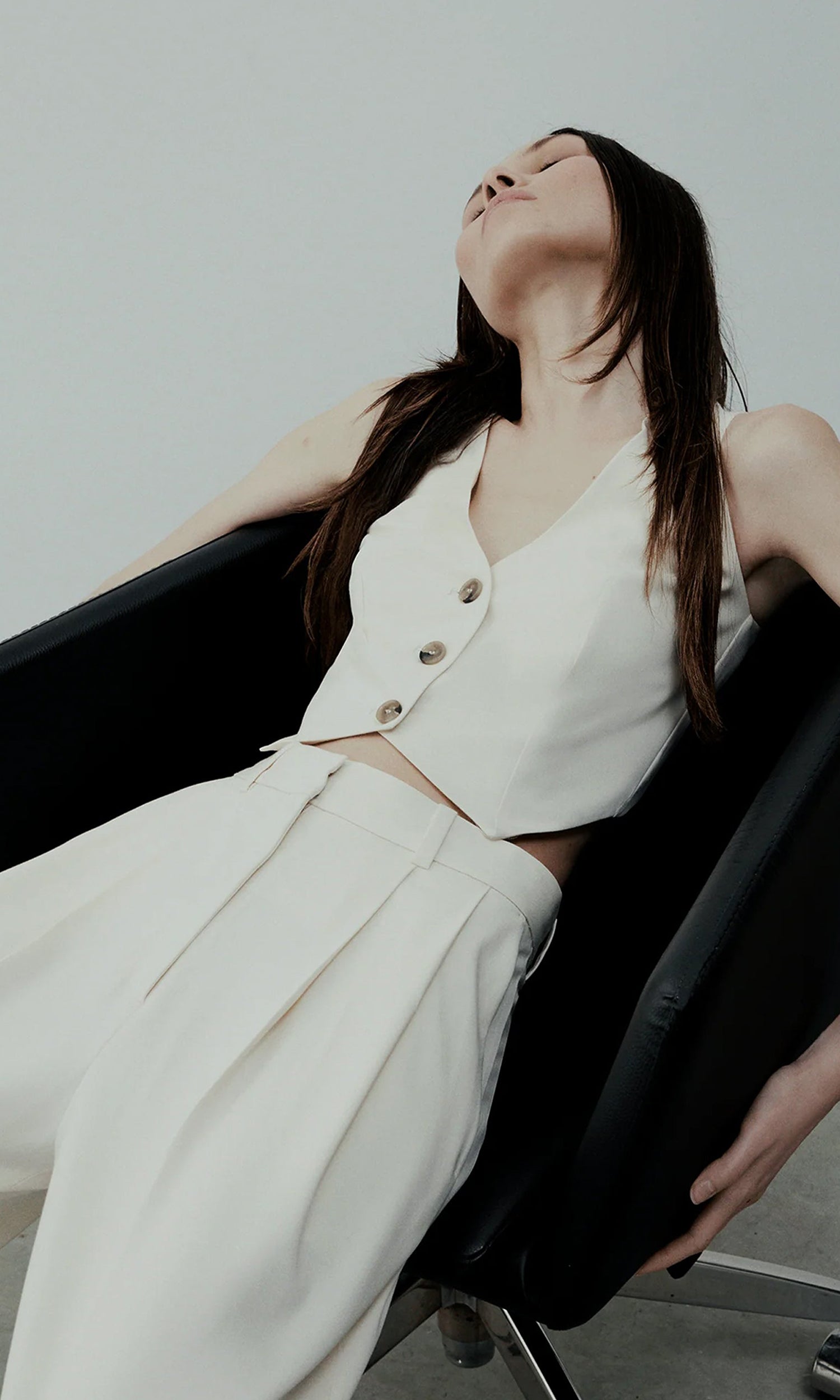 This ivory waistcoat is designed with a V-neck style, button placket, and a regular cropped fit.