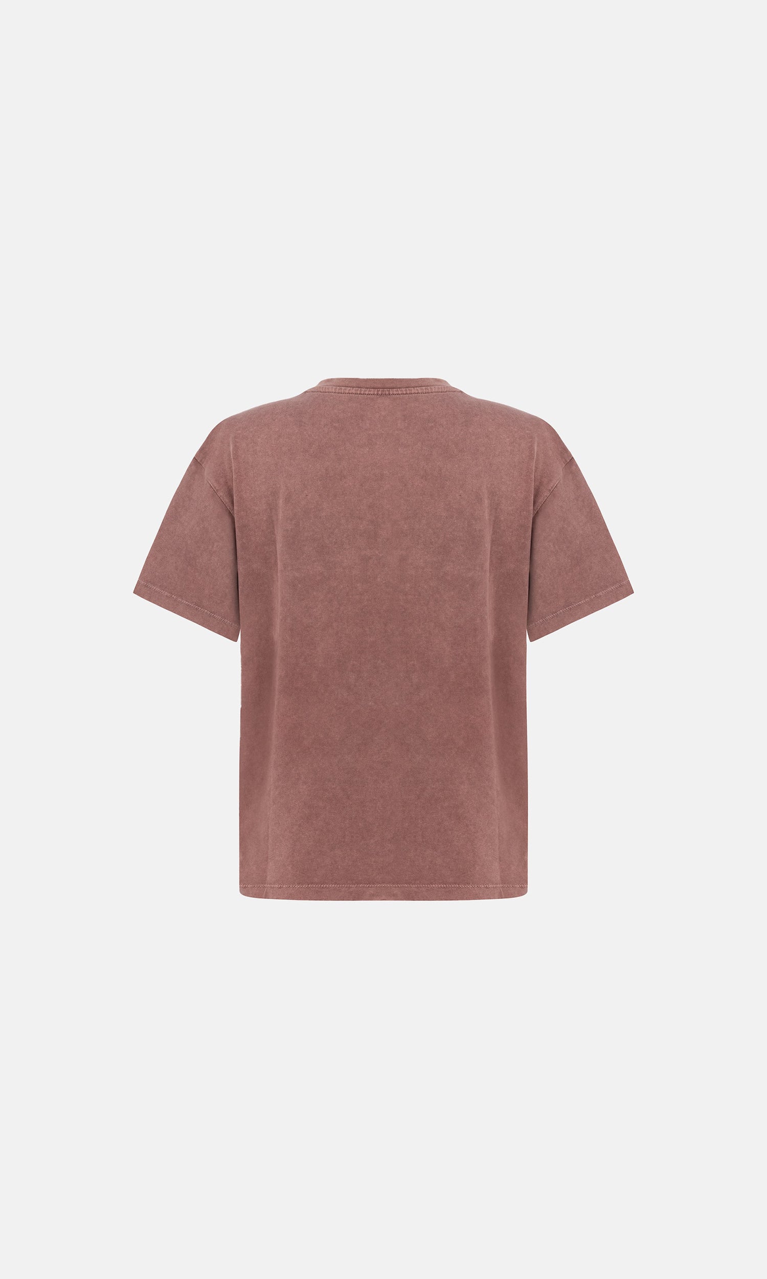 The Morgan t-shirt is an oversized crewneck in a sun-faded terracotta wash.