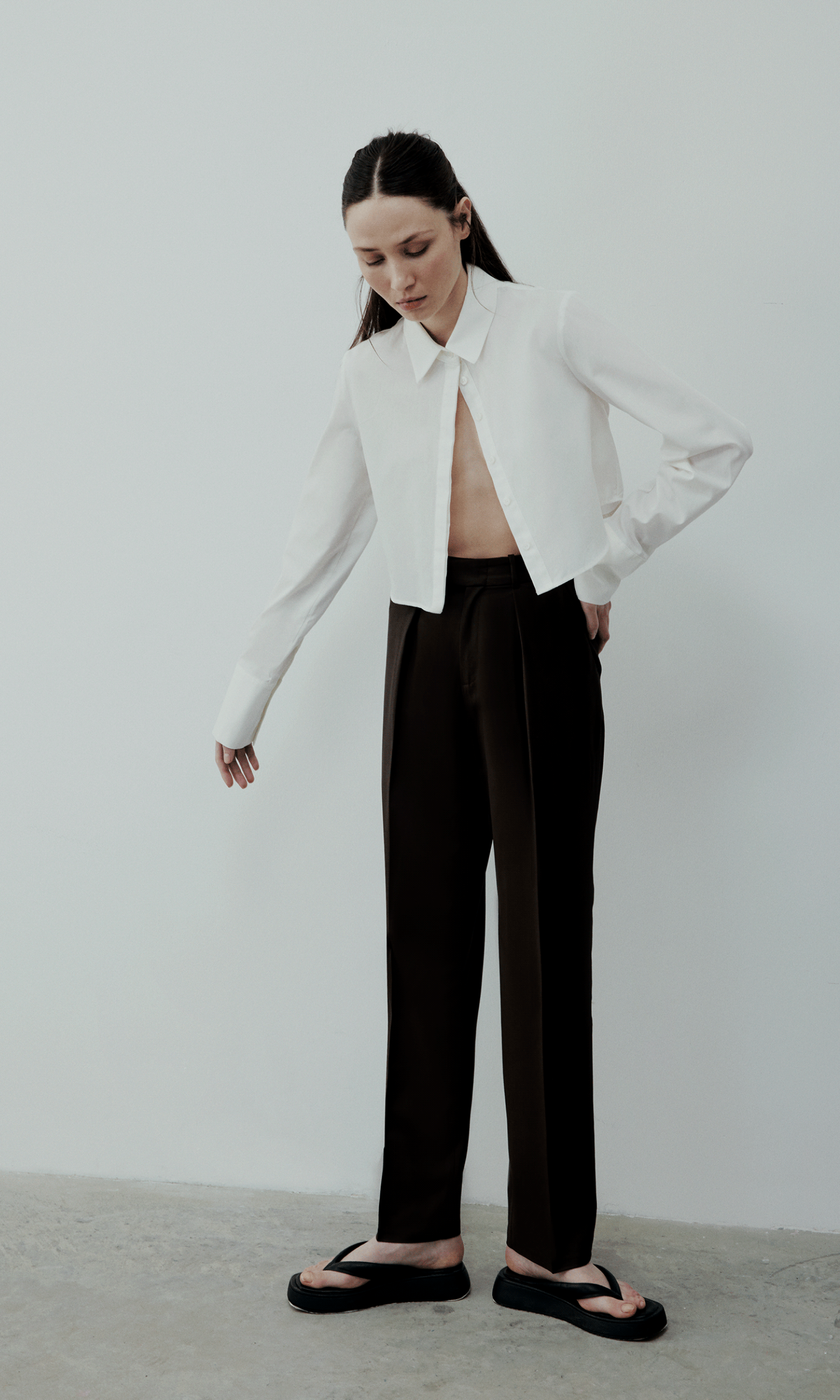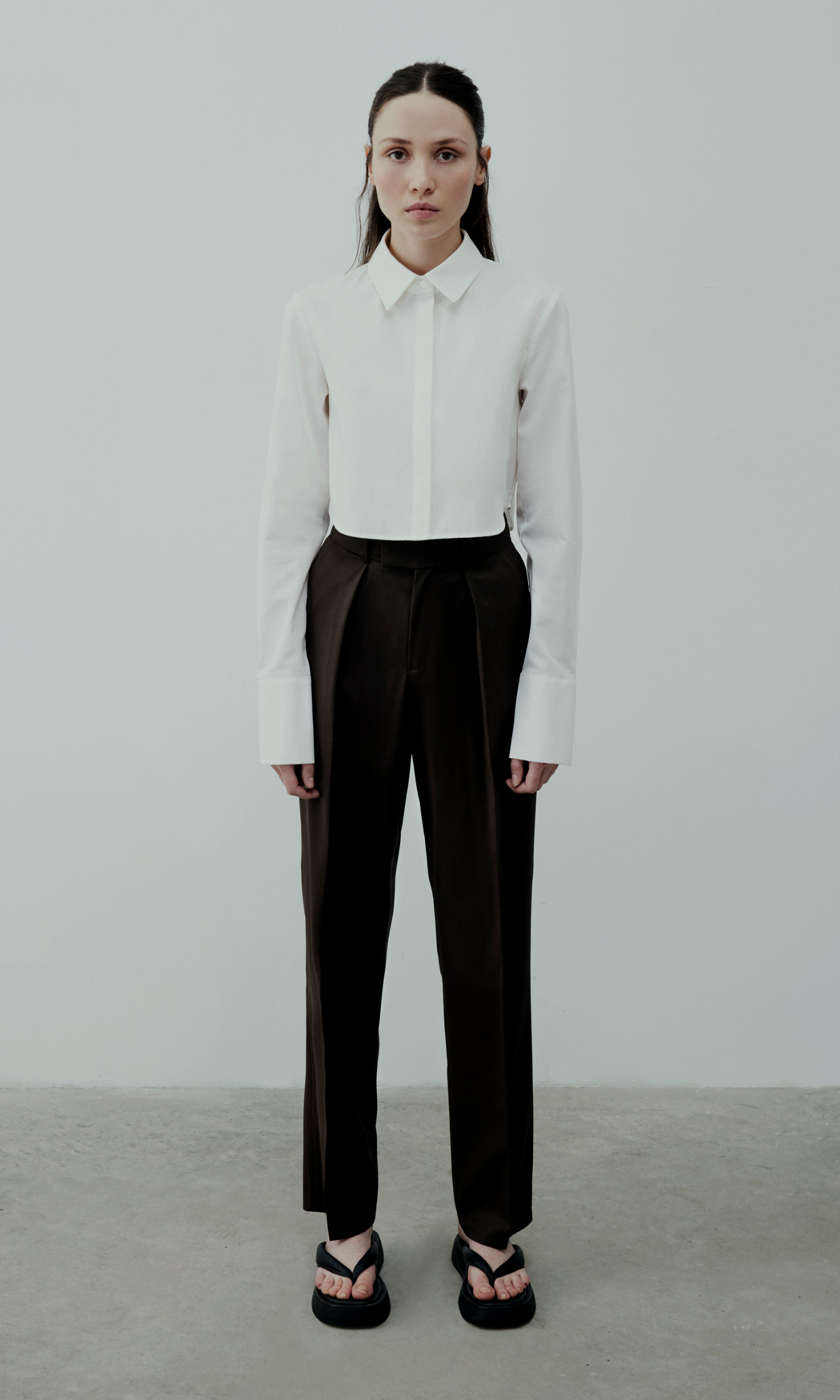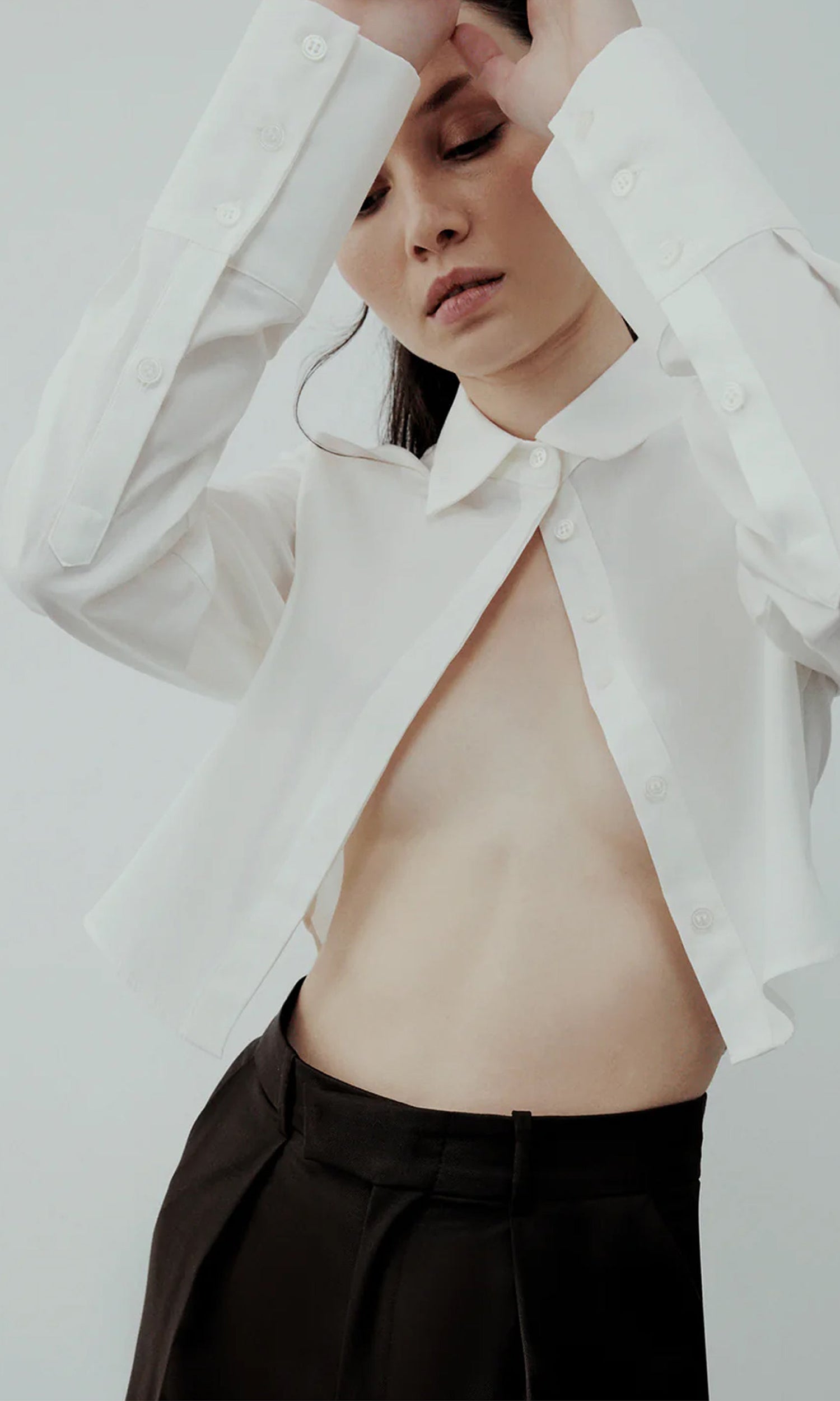 The oversized crop shirt is produced in lightweight cotton, perfect for warmer months, and worn as a relaxed fit.